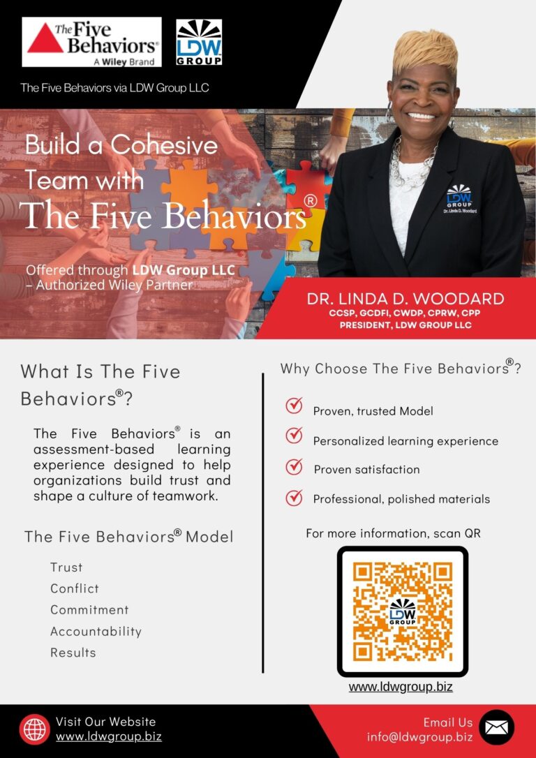As an Authorized Partner with Wiley Everything DiSC® Assessment and The Five Behaviors®, Dr. Woodard offers certified team building and development for teams. Detailed informational downloads available below.